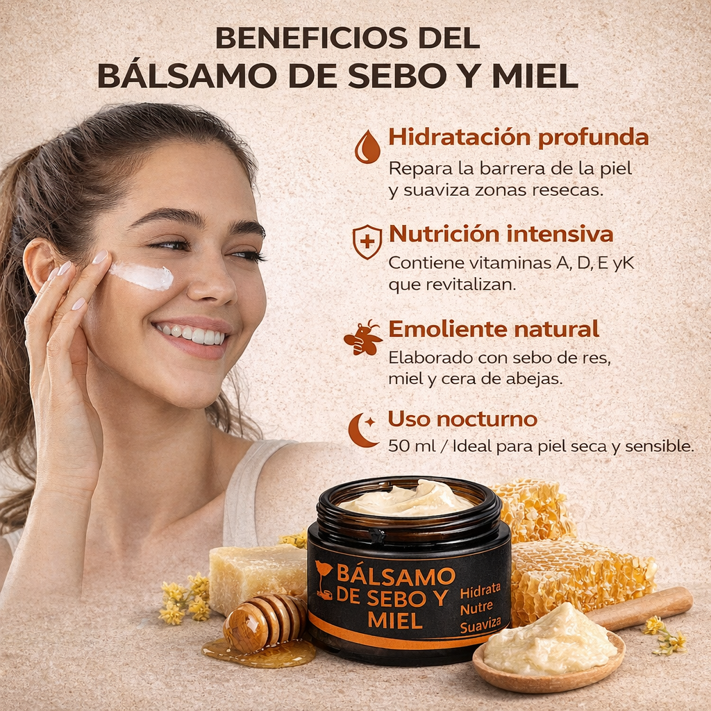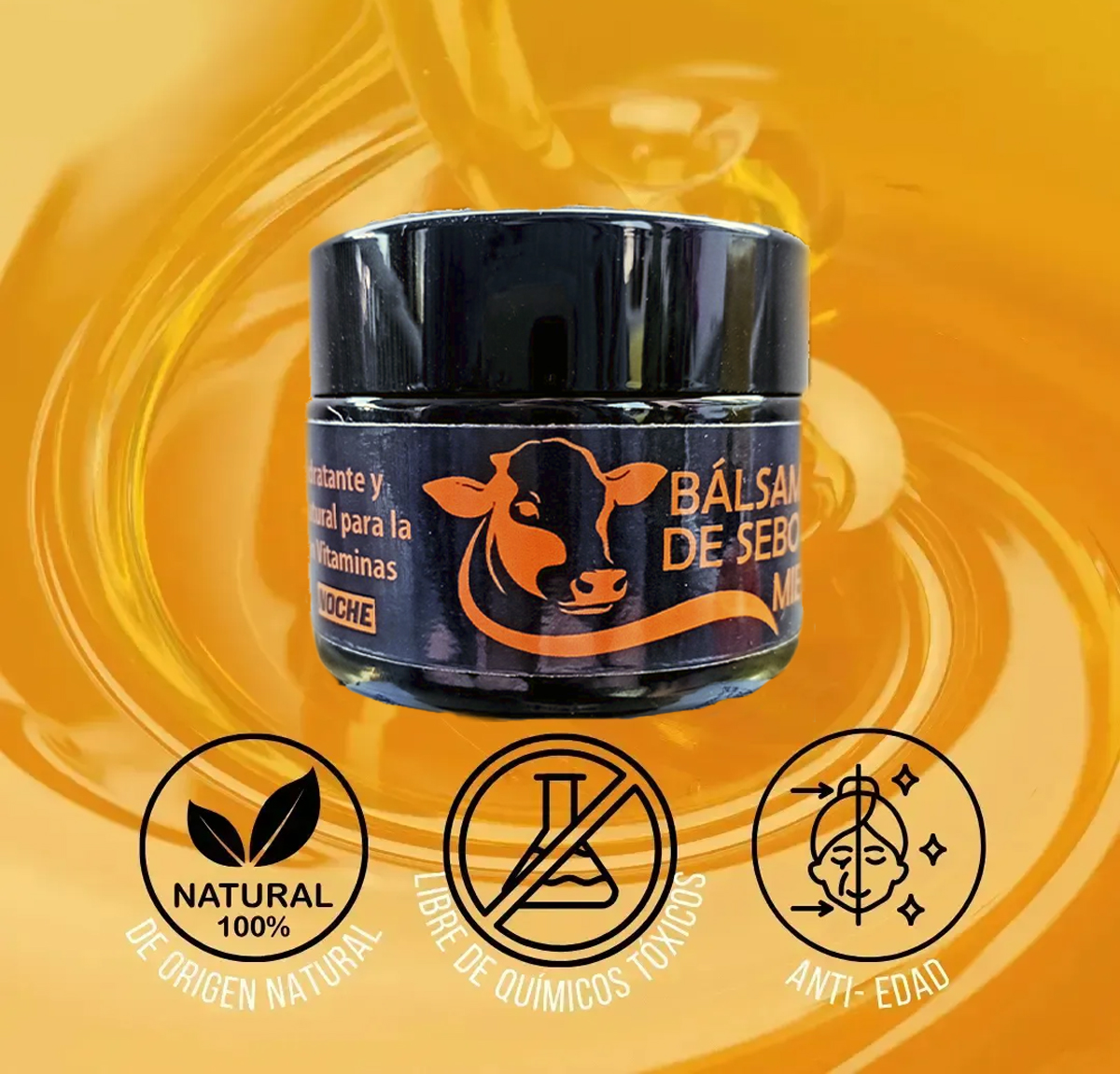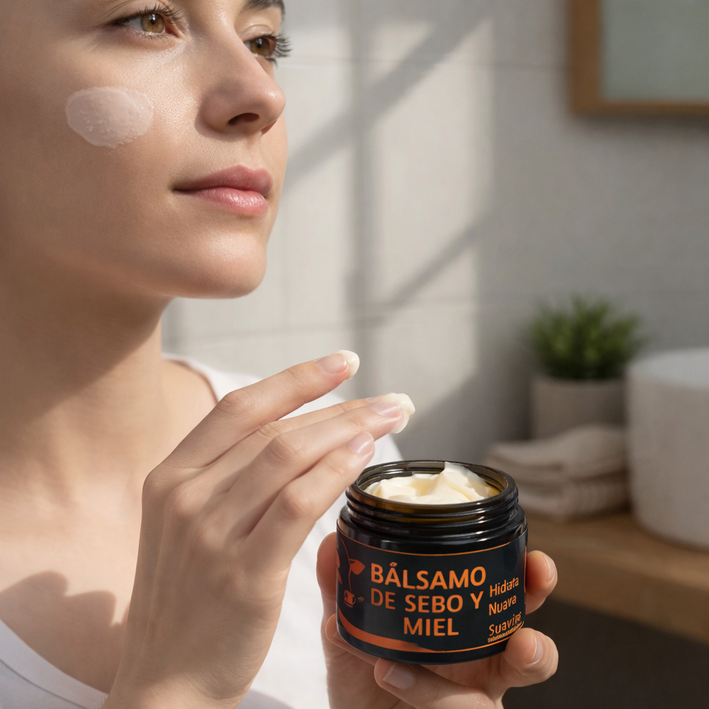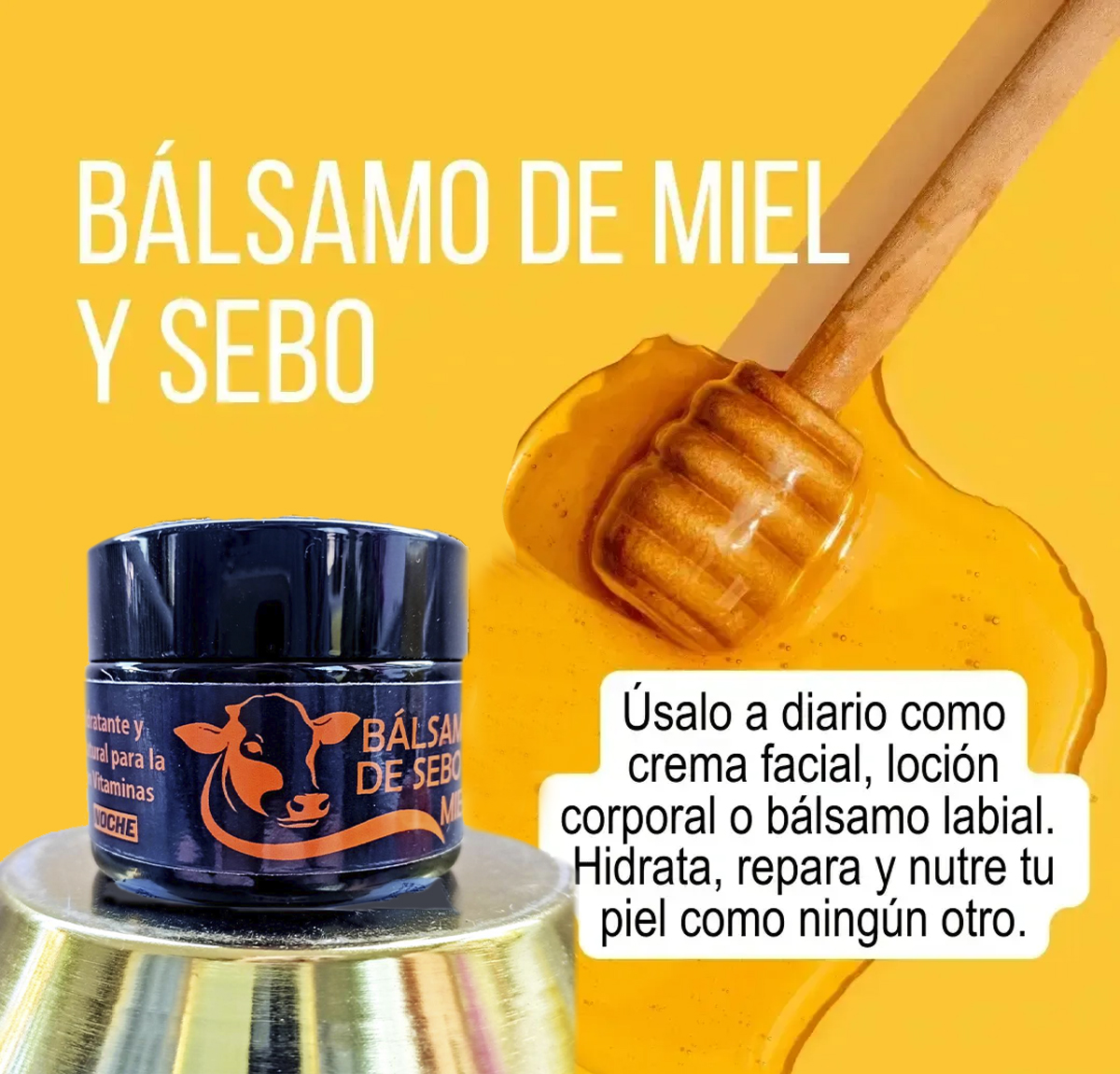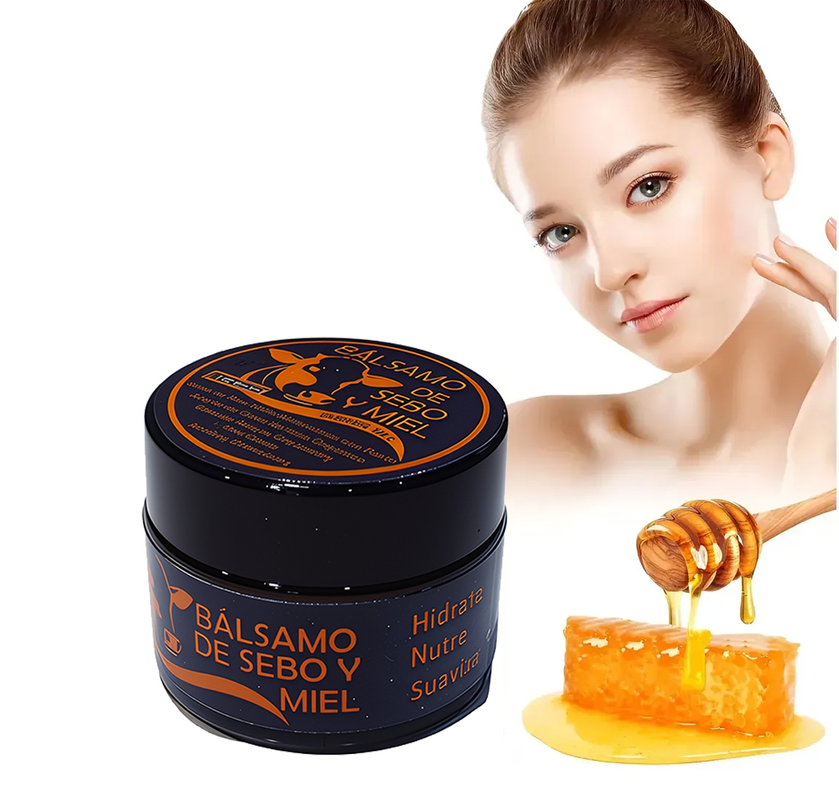 Bálsamo de Sebo de Res y Miel, hidratante natural intensivo para piel seca y sensible.