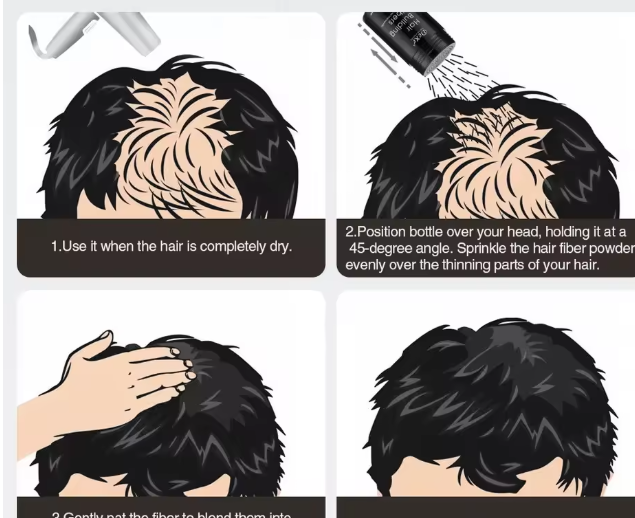 2. Utilizando tecnología avanzada de flocado electrostático, el color de la fibra se integra perfectamente con el color natural de tu cabello.Se siente ligero y aireado, sin apelmazarse, lo que garantiza una apariencia más joven que imita el cabello real, eliminando la vergüenza de las pelucas falsas.