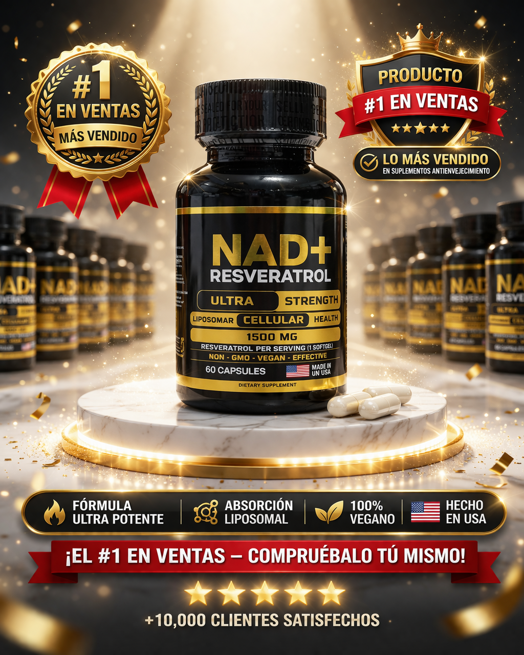 ¿Quieres sentirte con más energía, verte mejor y cuidar tu salud a largo plazo? Esta fórmula antioxidante avanzada con NAD+ y Resveratrol está pensada para quienes quieren ir un paso más allá en su bienestar 💪