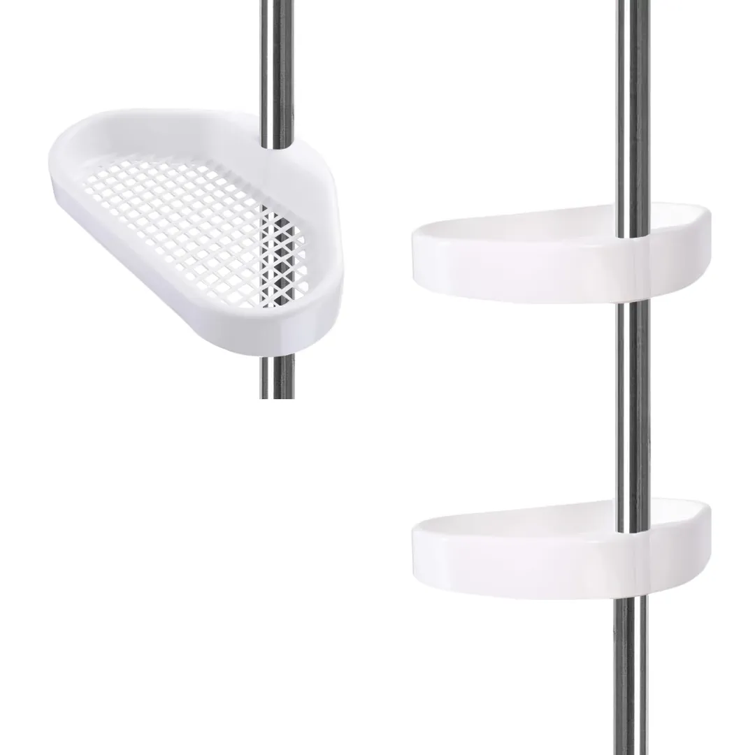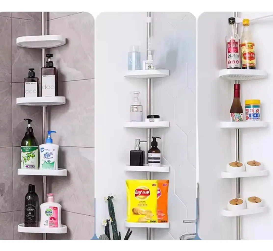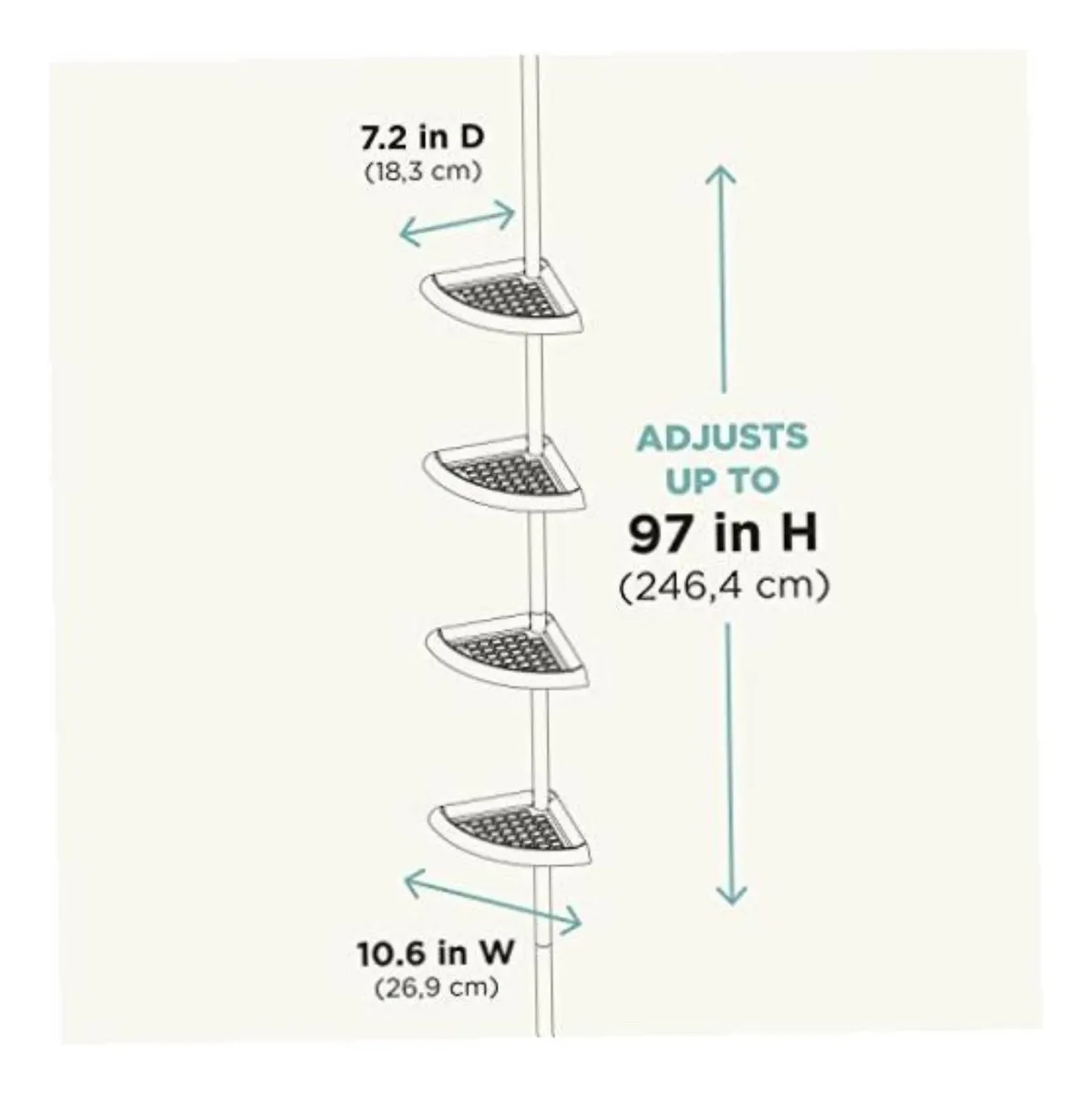 Poste de tensión para ducha de esquina de baño, estante de almacenamiento de 4 niveles, organizador de ducha, estante decorativo de acero inoxidable. Optimice su espacio en el baño con el Organizador Esquinero Ducha Para Baño Multiuso en color blanco. Este elegante mueble cuenta con cuatro estantes, ideales para mantener sus productos de higiene personal organizados y al alcance de la mano. La altura de 1.7 m y un ancho de 30 cm permiten que se adapte perfectamente a cualquier rincón, maximizando el uso del espacio sin sacrificar el estilo.