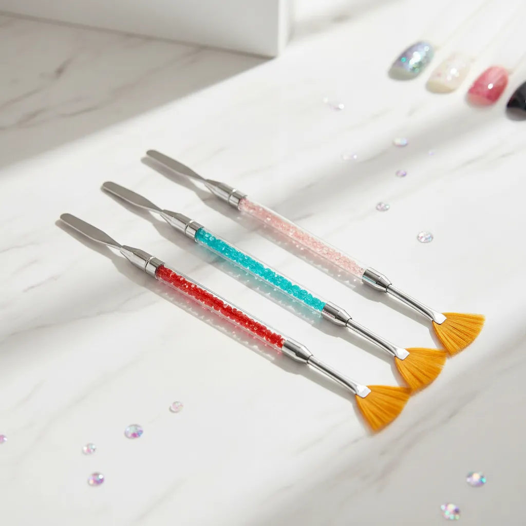 Descubre el Pincel Dual Espátula y Abanico Multifuncional, una herramienta esencial para quienes buscan perfeccionar su técnica en manicura y pedicura. Este pincel, de la marca Generic, combina dos funciones en un solo diseño, facilitando la aplicación de productos y la creación de detalles finos en tus uñas