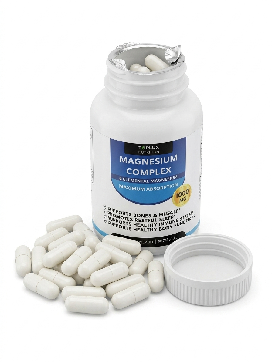 Te presentamos el COMPLEJO DE MAGNESIO PREMIUM DE 8 TIPOS DE TOPLUX NUTRITION. Una mezcla exclusiva de 8 formas elementales de magnesio de alta biodisponibilidad, diseñada para una MÁXIMA ABSORCIÓN. ¡Nada se desperdicia, todo se aprovecha! 💪 Tu cuerpo sentirá la diferencia.